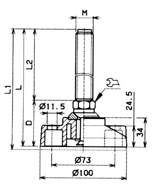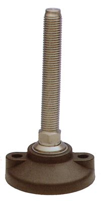 Piedino con base di appoggio in poliammide rinforzato. Stelo filettato rilevabile dalla tabella. Gomma antivibrazione resistente all'olio, durezza 70 shore. Possibilità di ancoraggio al suolo
