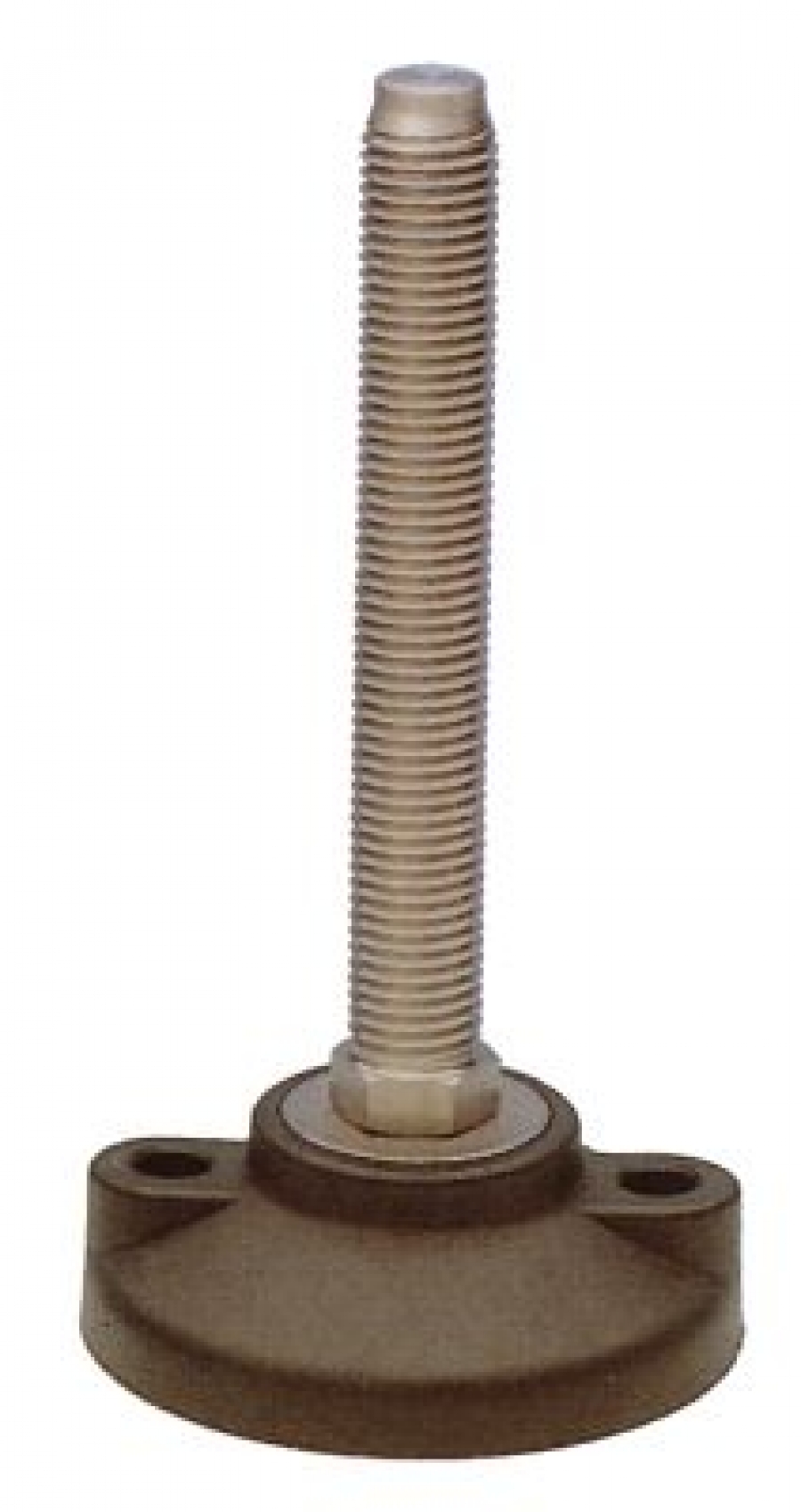 Piedino con base di appoggio in poliammide rinforzato. Stelo filettato rilevabile dalla tabella. Gomma antivibrazione resistente all'olio, durezza 70 shore. Possibilità di ancoraggio al suolo mediante l'apertura del diaframma contrassegnato