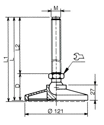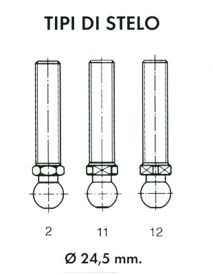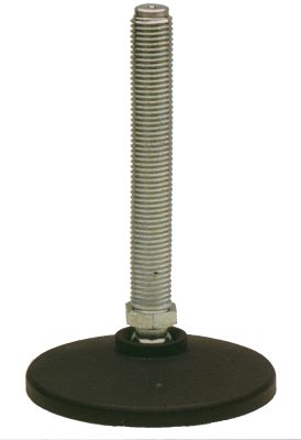 Piedino con base di appoggio in poliammide rinforzato. Stelo filettato rilevabile dalla tabella. Versione antivibrazione dotata in gomma resistente all'olio, durezza 70 shore.